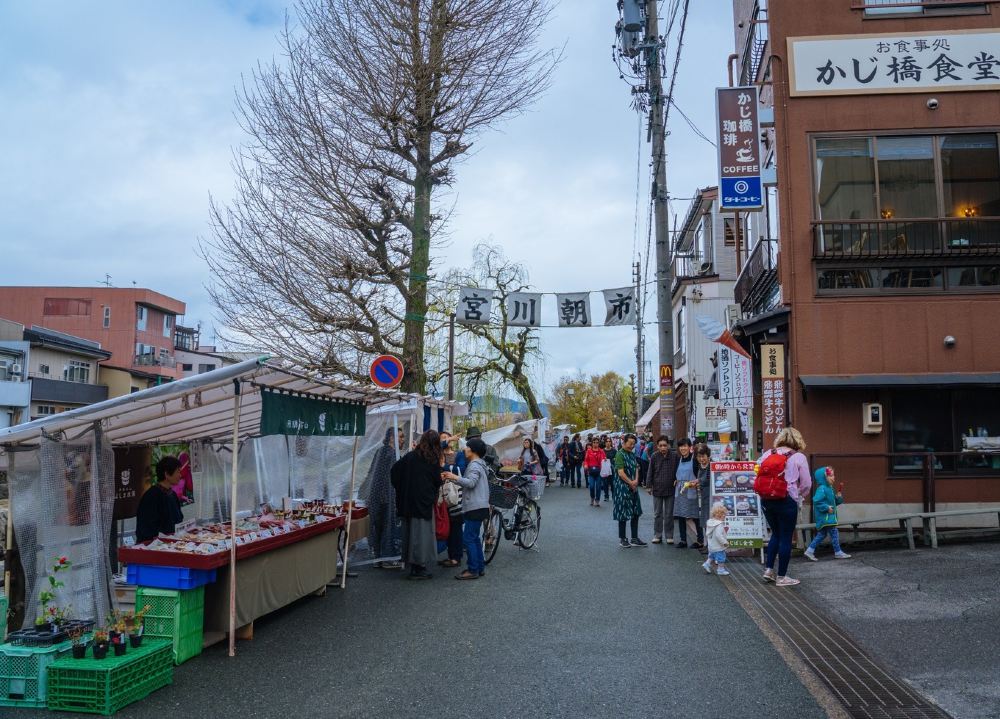 【宫川朝市】是当地极具特色的清晨市集(一般中午12点前结束),位于宫川河畔,有路边商铺,也有路边摊,以贩卖新鲜农产品、手工艺品和飞驒地区特色小吃闻名,值得一逛。