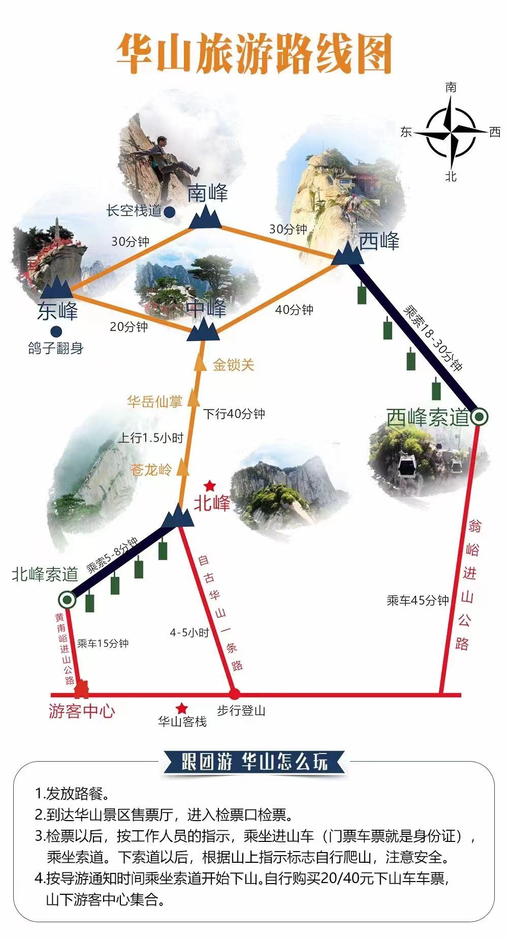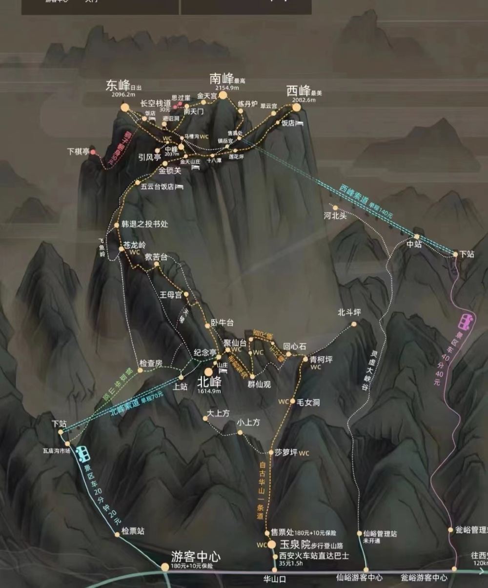 西安华山1日【赠登山三宝(导览器、登山手套、水)+天天发团】【[灵活多样]二环内上门接早,返程可选钟楼/火车站!多条索道套餐可选】