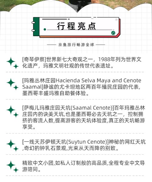 奇琴伊察古城遗址+双天坑一日游中文团:包含指定区域酒店接送+包含景区门票+午餐费用;不含导游小费。