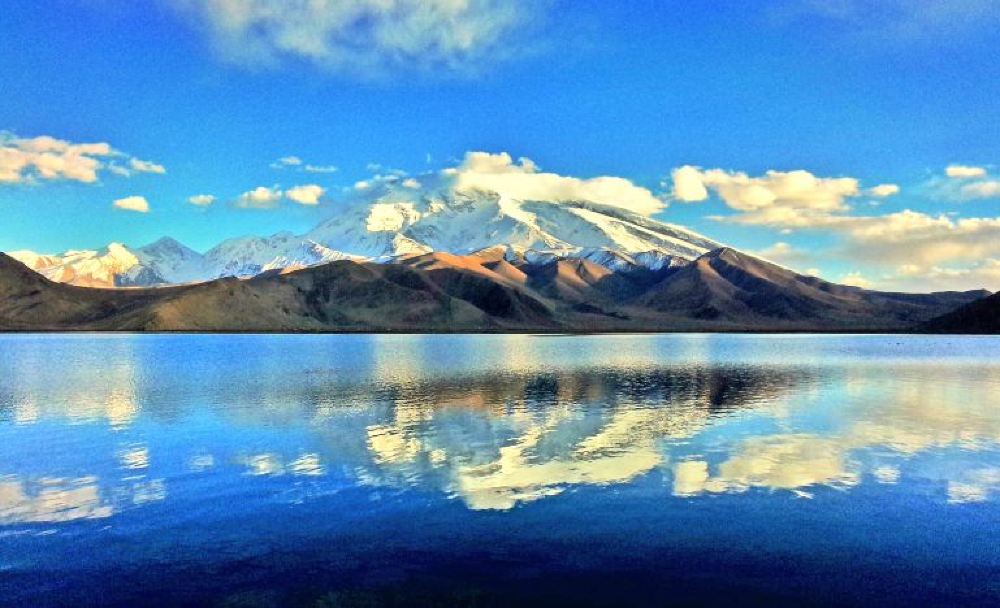 ▲ 湖东侧矗立着“冰山之父”慕士塔格峰(海拔7546米)西侧是公格尔峰和公格尔九别峰,三座雪山环绕,倒映湖中,形成“山水同色”的震撼景观。走进喀拉库勒湖就像走进了大自然的艺术殿堂,这里有湛蓝深邃的湖水,有雄伟壮丽的雪山冰川,有广袤无限的草原湿地,每一处景色如诗如画,令人陶醉不已。