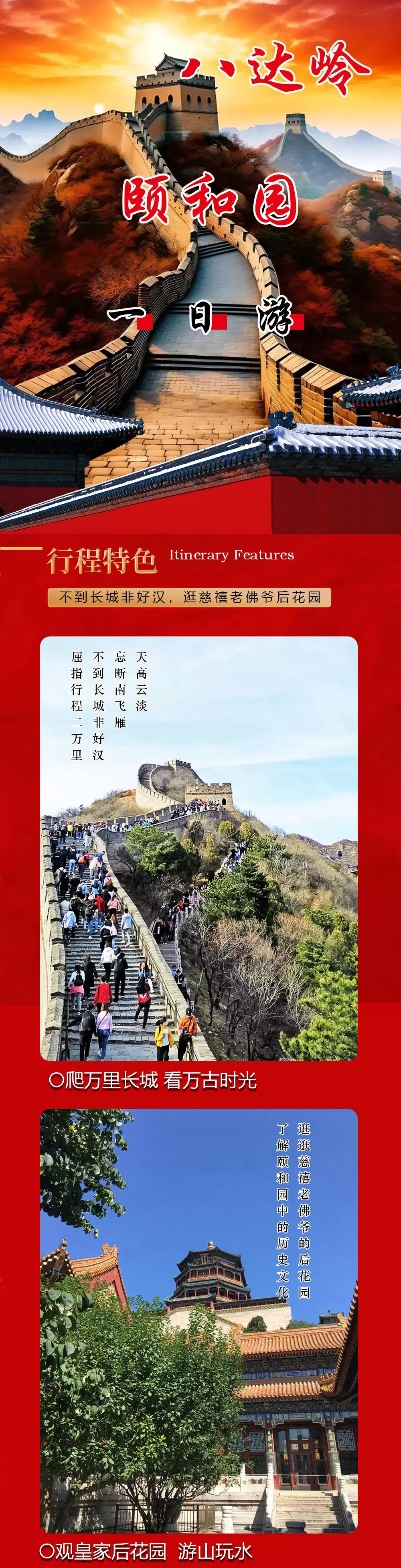 【包车游】八达岭长城+颐和园一日游整车价+五环内接送+时间自由+不拼团
