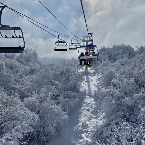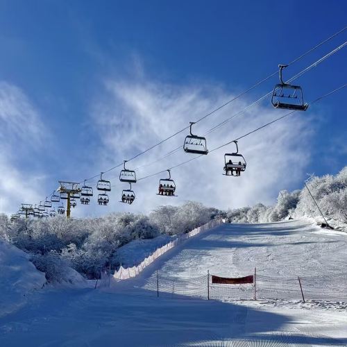 ▲ 这里拥有初、中、高级多种雪道,无论是新手还是滑雪高手,都能在此尽情享受滑雪的乐趣。还有索道观览九顶山的美景。
