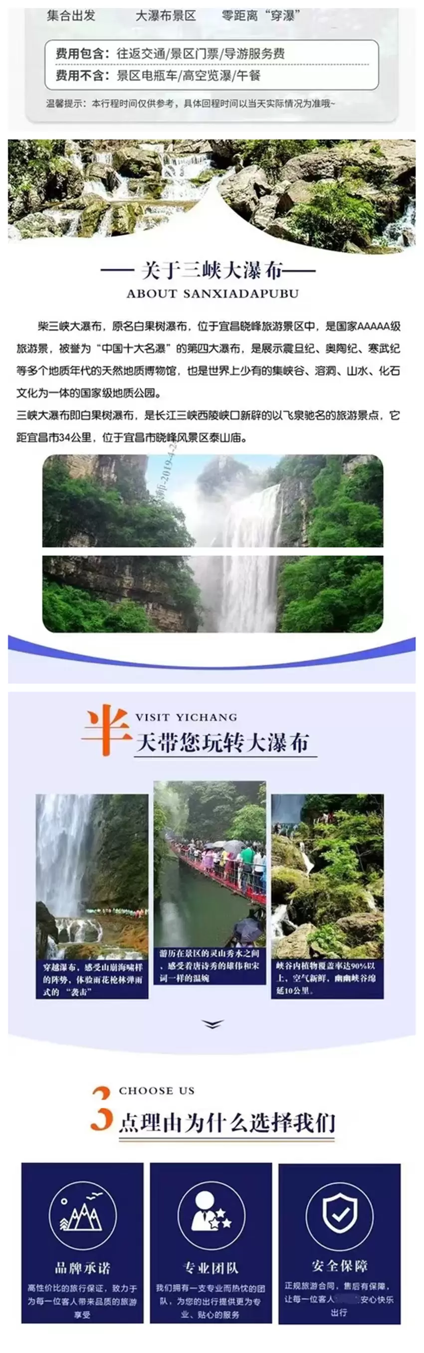 三峡大瀑布+金狮洞风景区+情人泉一日游【晓峰全景&天天发班 纯玩无购物+东站可接&门票+往返车+导游】