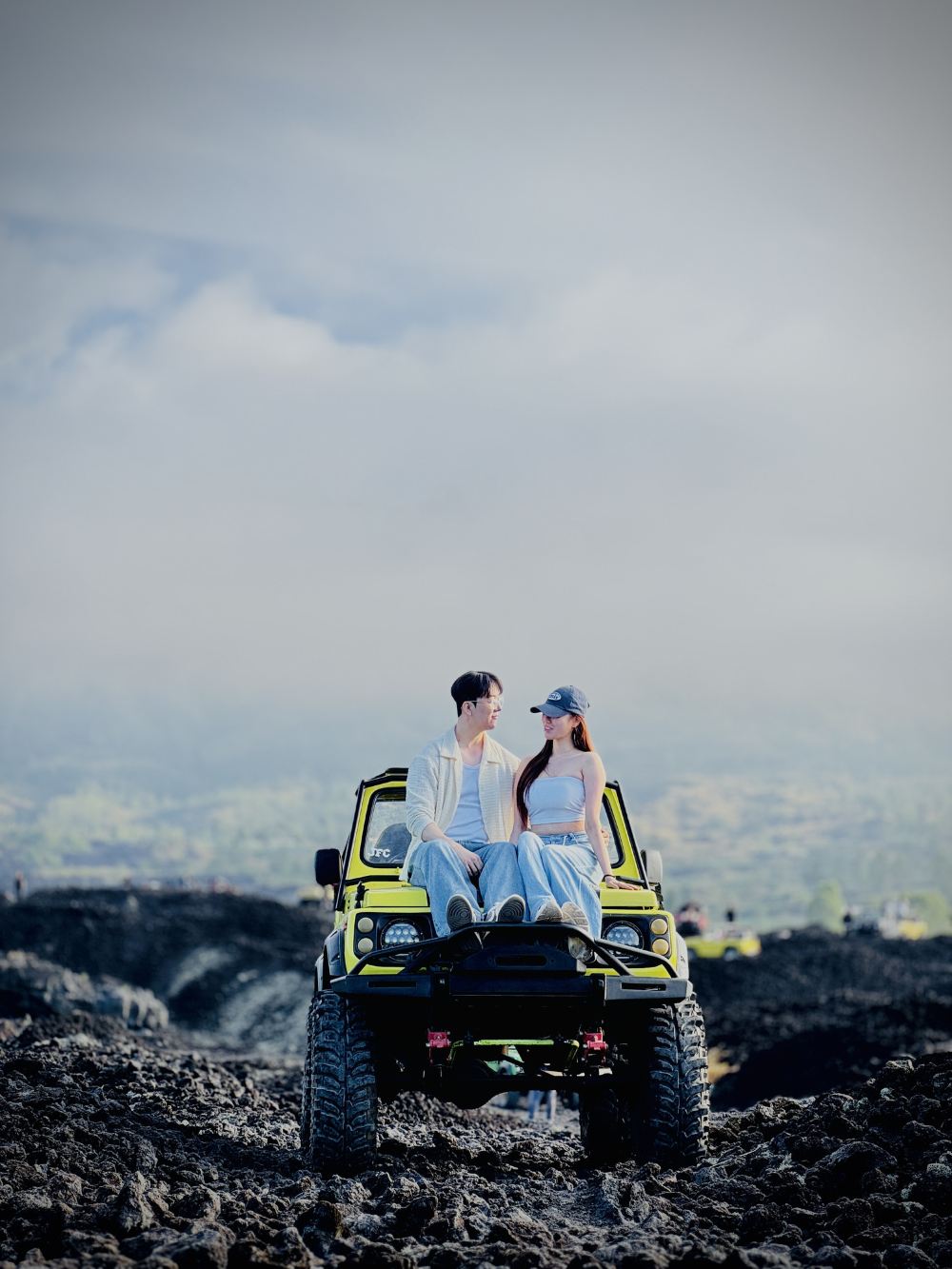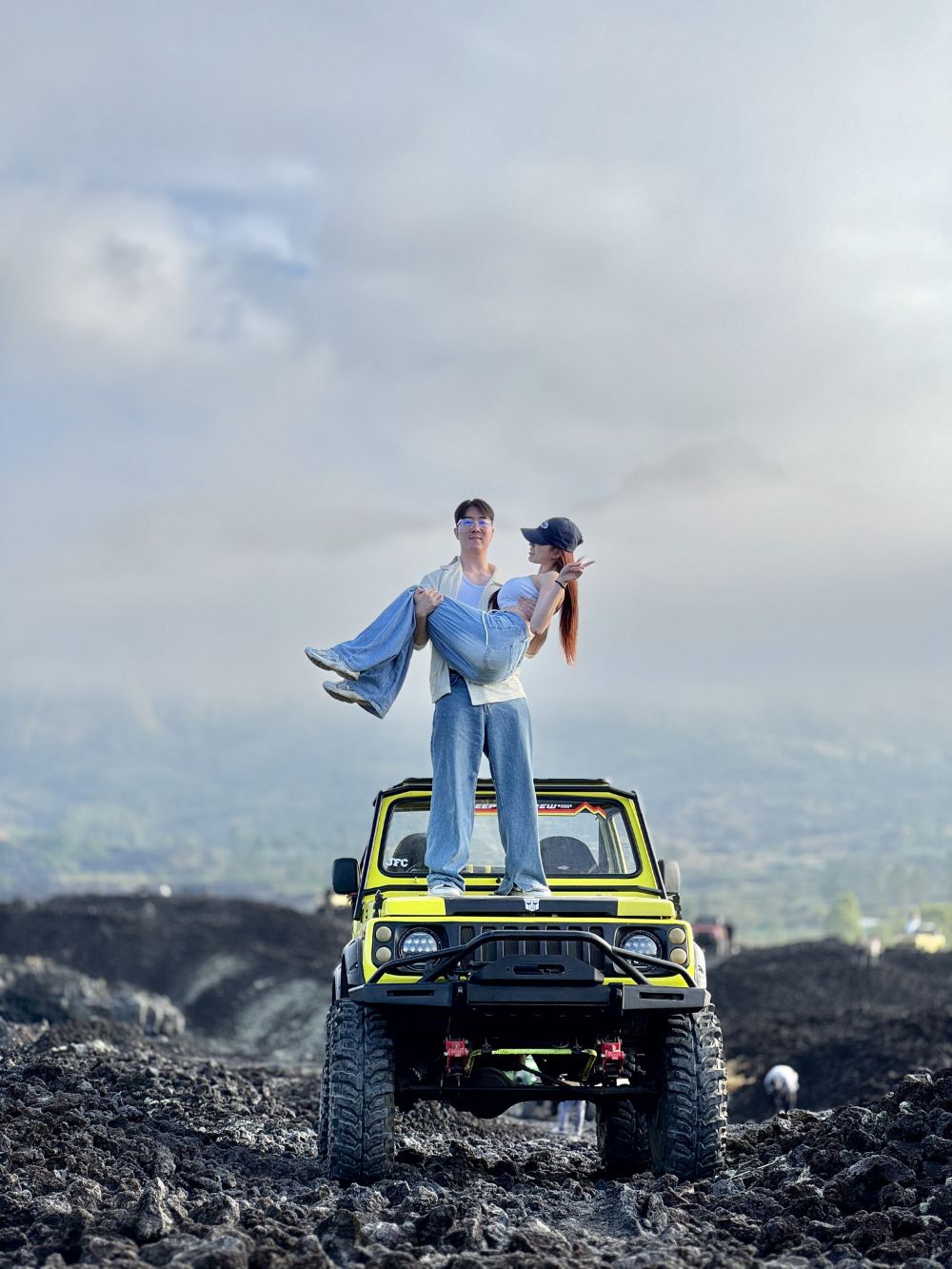 ▲ 一对甜蜜的情侣在巴图尔火山吉普车之旅