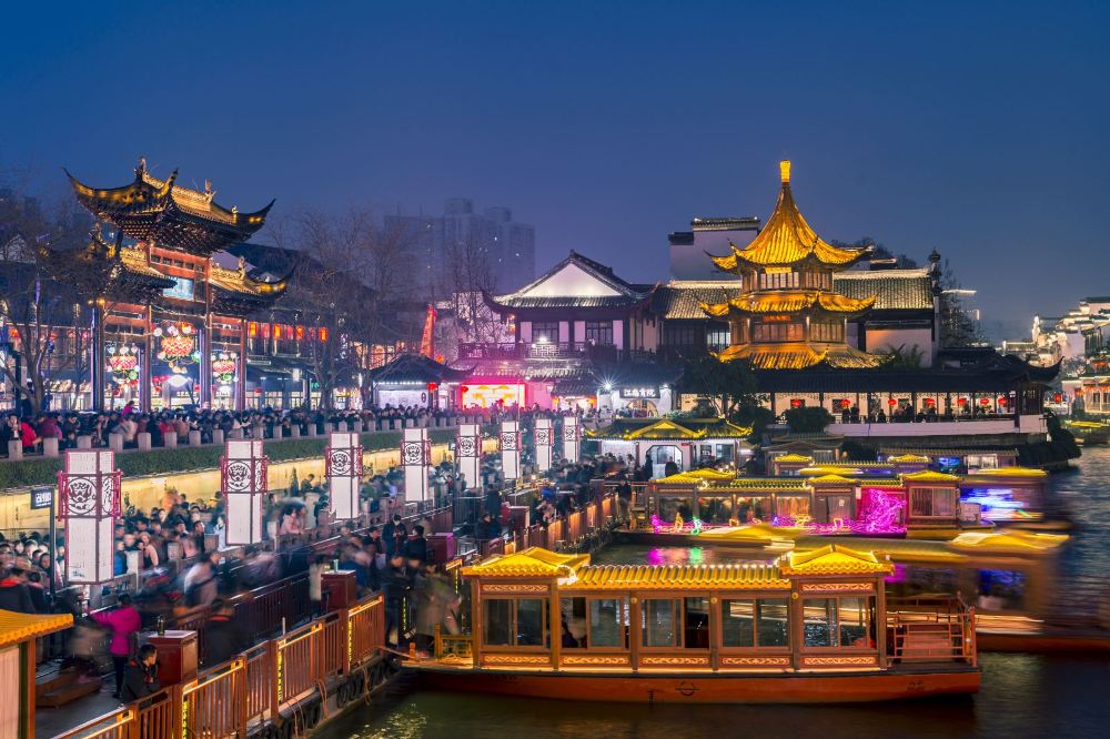 下午六点左右,我们的行程从南京市区酒店出发,首先前往夫子庙秦淮风光带。这里是南京代表性的历史文化街区之一,您将漫步古街,感受南京的市井风情与传统文化。夫子庙不仅是南京的文化地标,更是体验金陵古韵的巨佳之地。您可以在这里购买特色手信,或品尝南京的传统小吃,感受古街的热闹与烟火气息。