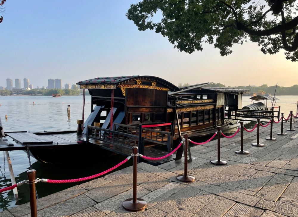 ▲ 乘船前往湖心岛,沿途欣赏烟雨楼风光,感受“轻烟拂渚,微风欲来”的南湖胜景。