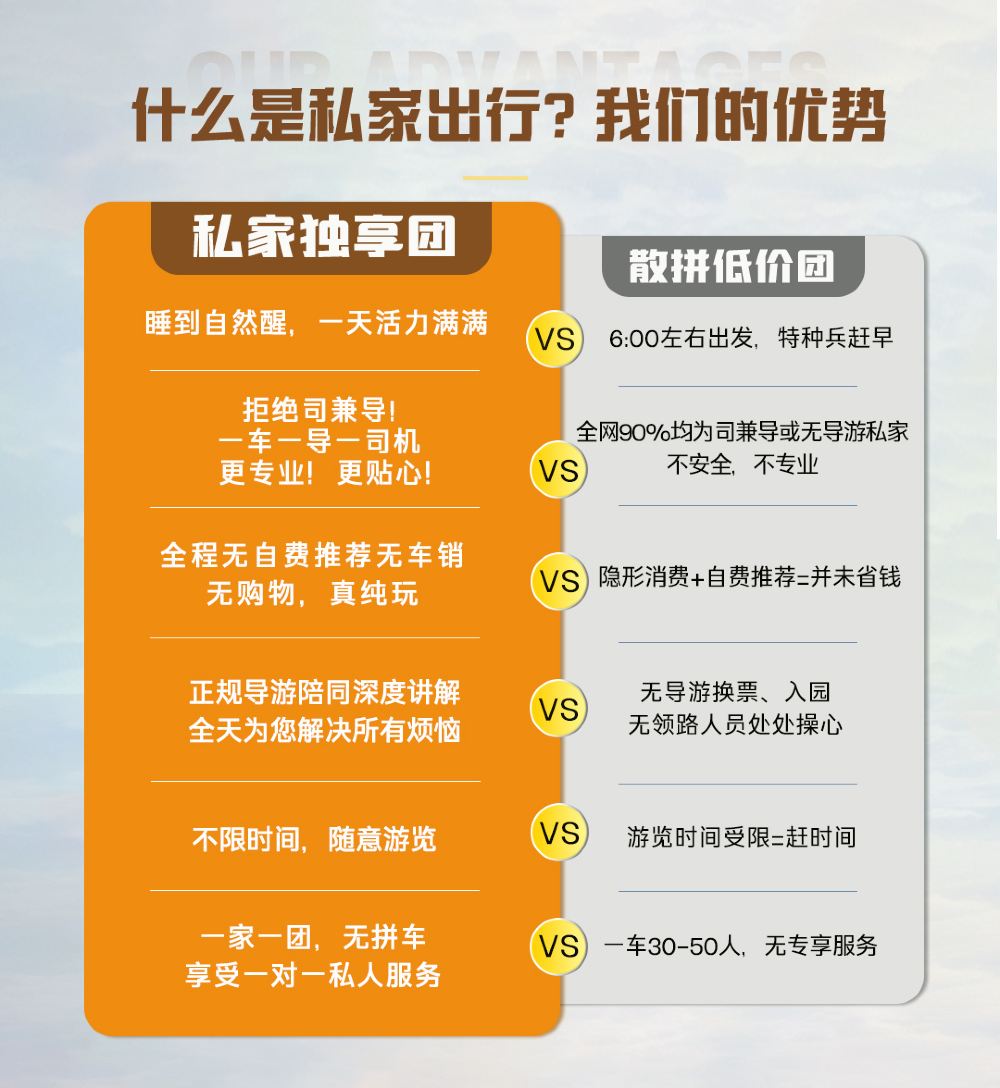 【真纯玩!】透明消费,您选择好线路,一价全含,不推自费,不车售,让您享受全天无打扰.真享受的私家旅行