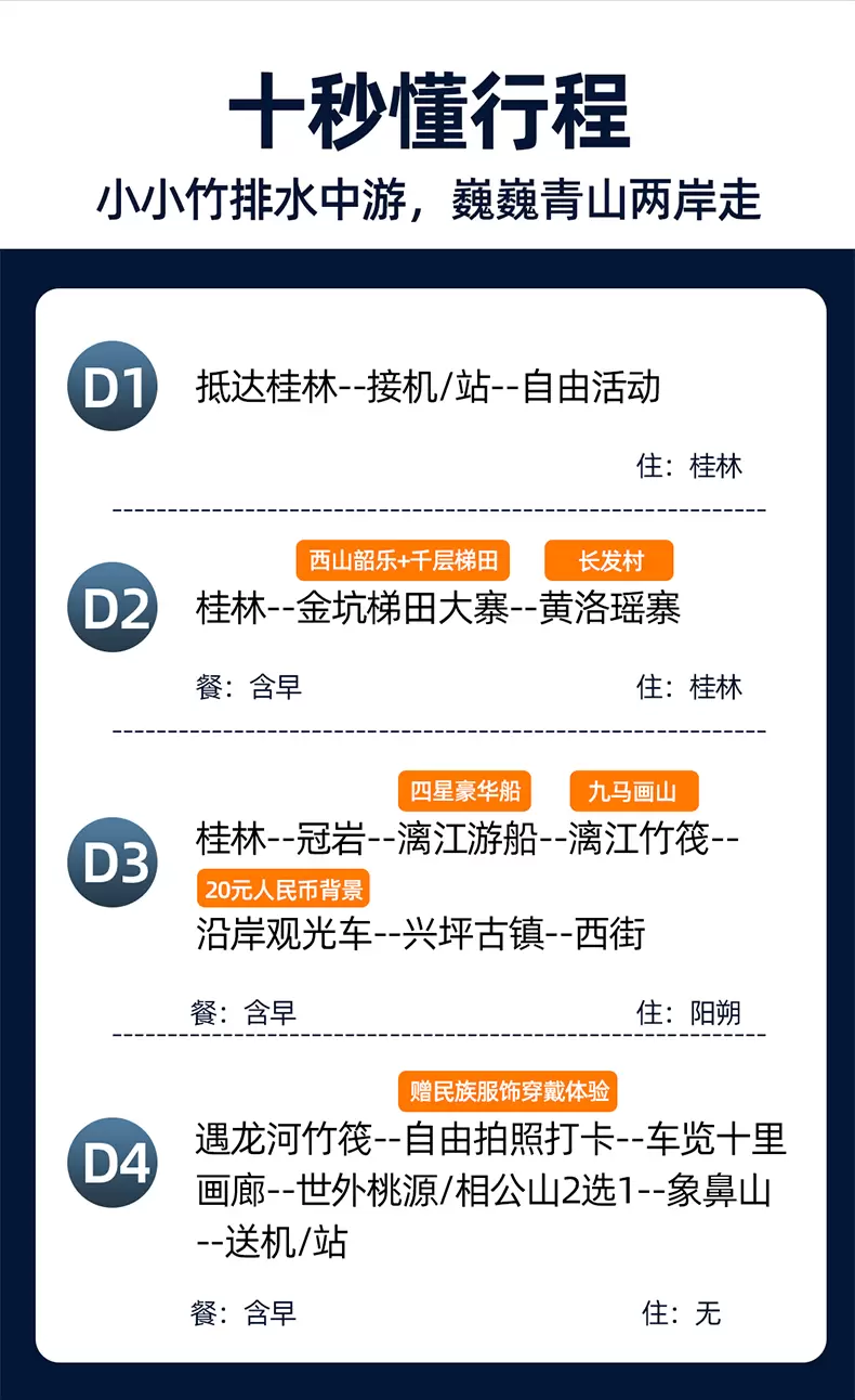 桂林阳朔+龙脊梯田+漓江精华游+遇龙河景区四日游【8人·佳游纯玩|漓江三游:四星船+漓江竹筏+20元背景】