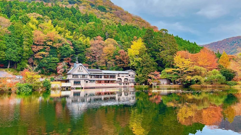 ▲ 步行约10分钟可抵达金鳞湖,湖面倒映远山,清晨时常见水气升腾,是极具氛围的拍照景点。 午餐可自由选择在地餐厅,定食、汉堡排、温泉蛋甜点等应有尽有。