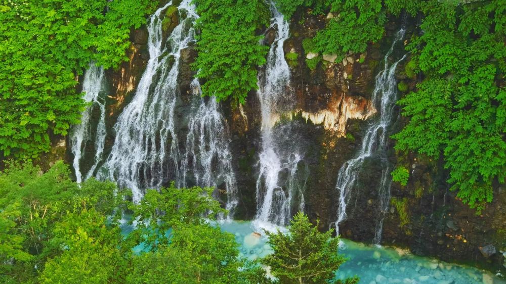 ▲ 白须瀑布, 瀑布隐藏在森林中,清澈的水流从岩壁垂下, 注入一条泛着蓝绿色的河流, 站在桥上可以望见整片水光与绿意交织的风景, 夏日来此特别凉爽宜人。
