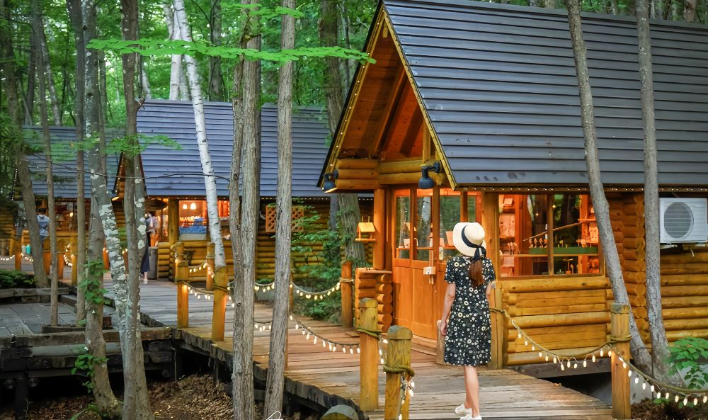 ▲ 森林精灵露台 位于富良野森林中的童话小木屋聚落,木质步道蜿蜒其间,商店里售卖手工艺品与纪念品,氛围静谧梦幻,是漫步与拍照的好去处。