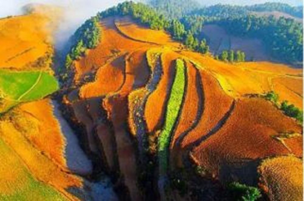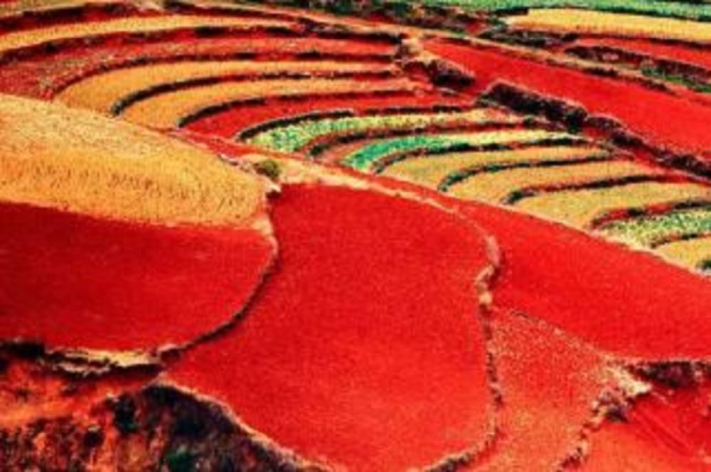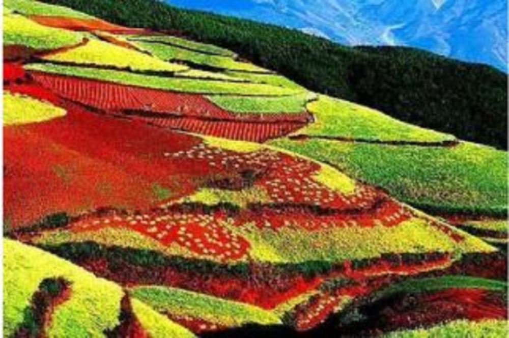 ▲ 昆明东川红土地位于昆明市东川区红土地镇,距昆明市区约150公里,特色的红土景观之一,被誉为“上帝打翻的调色盘