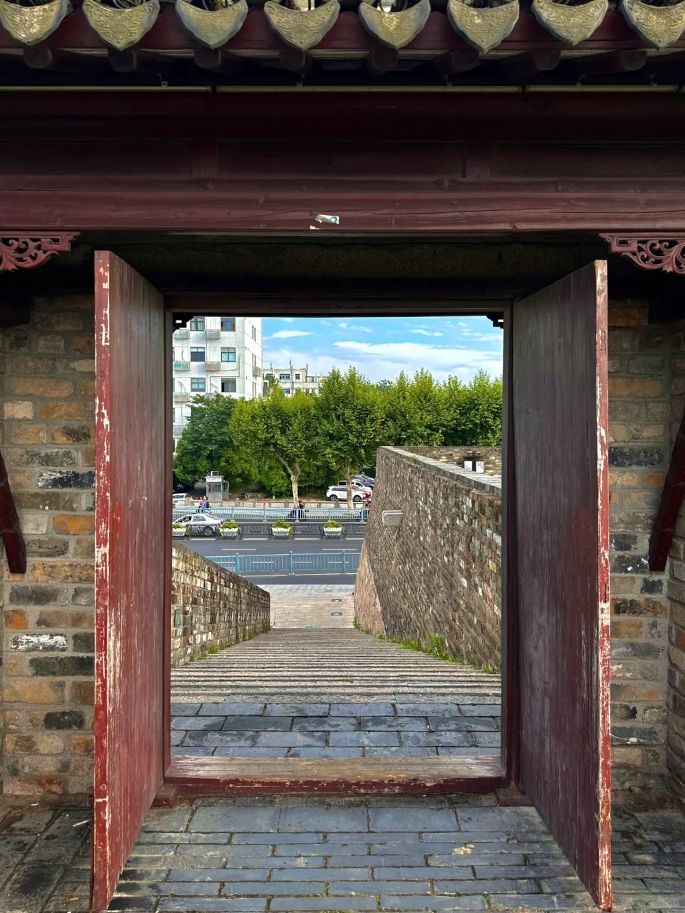 ▲ 苏州的古城区藏着一扇天空之门阶梯之上,古朴的大门形成一个天然画框仿佛走进出门的世界 - 再往上走可以看到古城的风光绿植在石道旁肆意生长,左右是白墙黛瓦真的是City Walk的不错选择