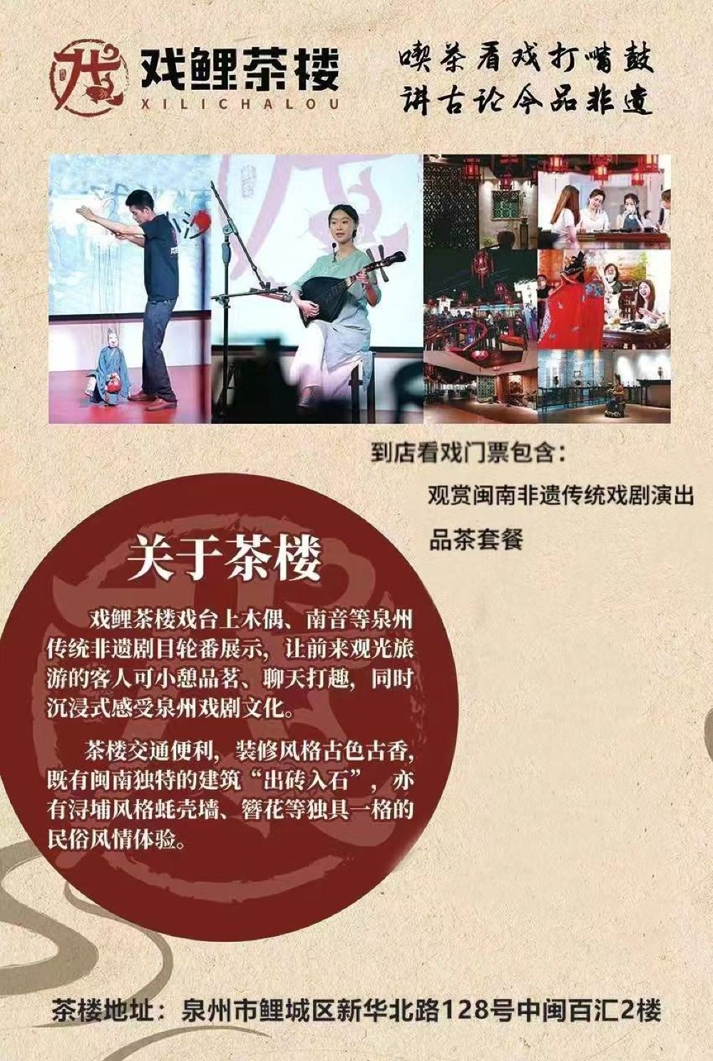 泉州西街+戏鲤茶楼半日游【漫步古城,喝茶看非遗表演品小点】【漫步泉州西街,找一座独具闽南特色的茶楼,细品闽南文化】