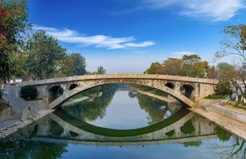 ▲ 赵州桥(又称安济桥)位于河北省石家庄市赵县洨河上,始建于隋朝(公元595年—605年),由著名匠师李春设计建造,距今已有1400余年历史,是世界上现存1早、跨度1大、保存1完整的单孔坦弧敞肩石拱桥。