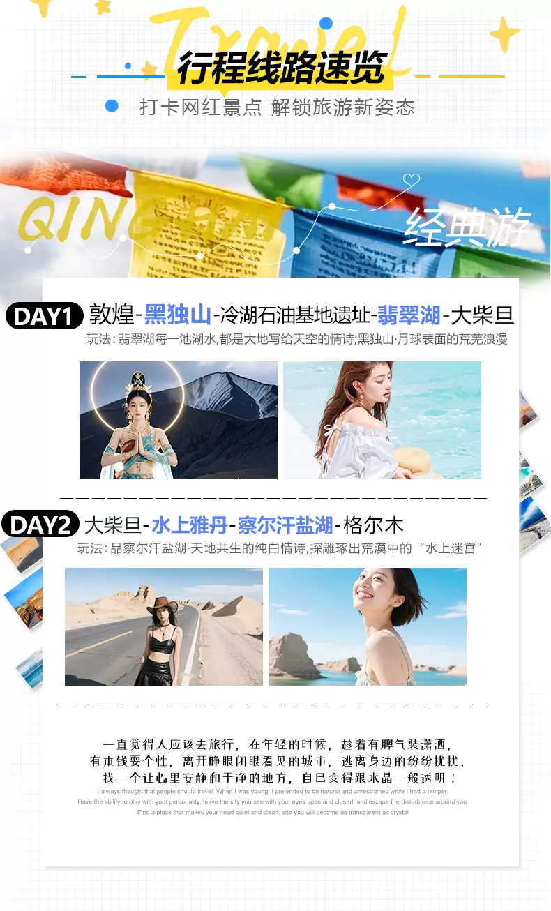 察尔汗盐湖+黑独山+大柴旦翡翠湖旅游景区+乌素特水上雅丹地质公园二日游【敦煌出发丨8人小团丨上门接送丨纯玩】