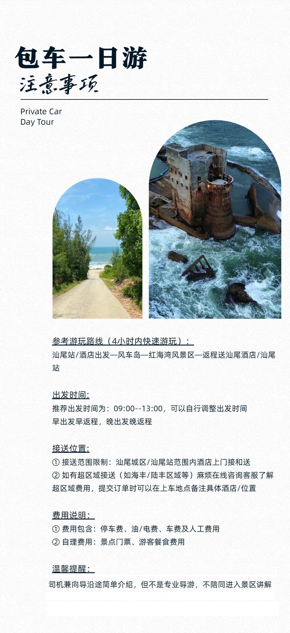 汕尾包车4小时半日游/玻璃海+红海湾旅游区+风车岛+海上古堡【四小时畅游红湾,风车海浪共翩跹。咨询定制用车】
