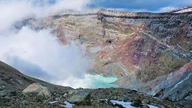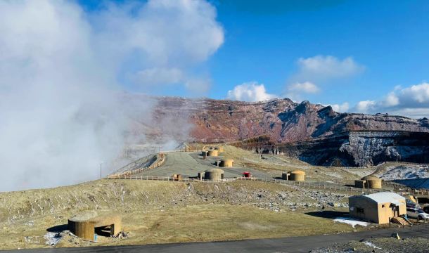 ▲ 【阿苏火山】 登上火山观景台,远眺喷烟升腾的火山口。阿苏山火山口硫磺味较重,对气味较敏感者可携带口罩。