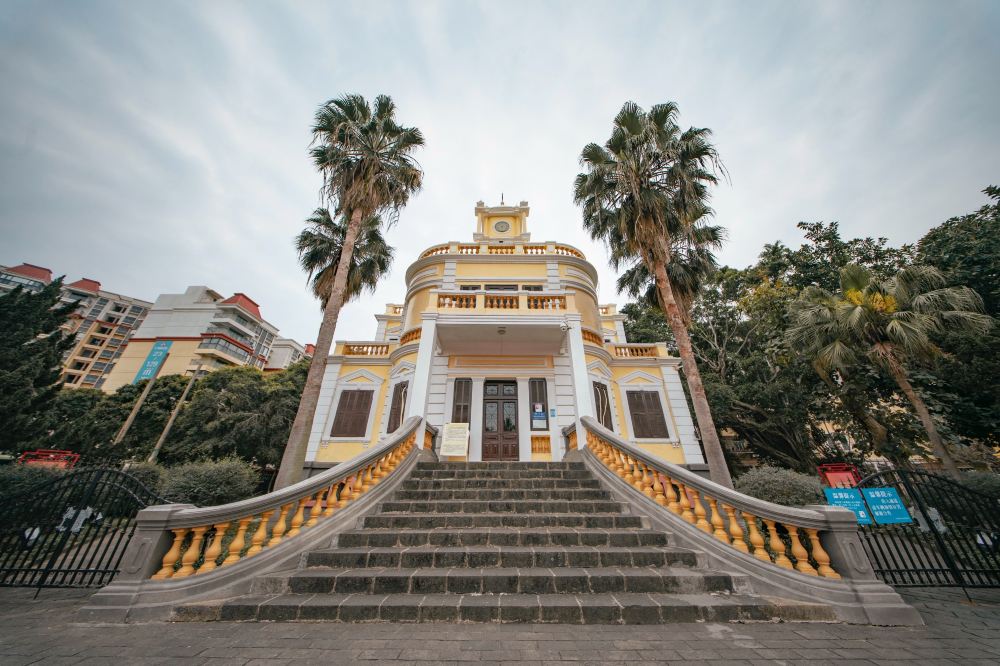 ▲ 广州湾法国公使署旧址:黄色法式建筑,门口是石板路。
