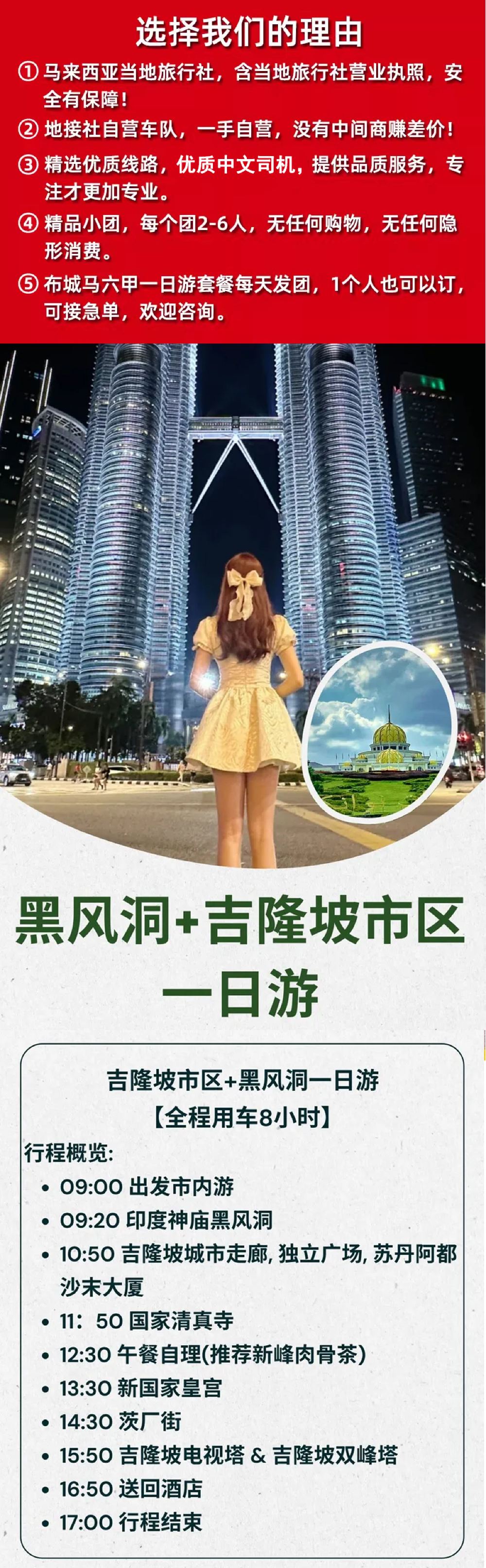 黑风洞+吉隆坡市区一日游【华人中文粤语司导/带玩讲解帮拍照】【[华人司导]免费帮忙拍照+中文服务+华人司机兼向导+纯玩无购物,拒绝一切隐形收费】
