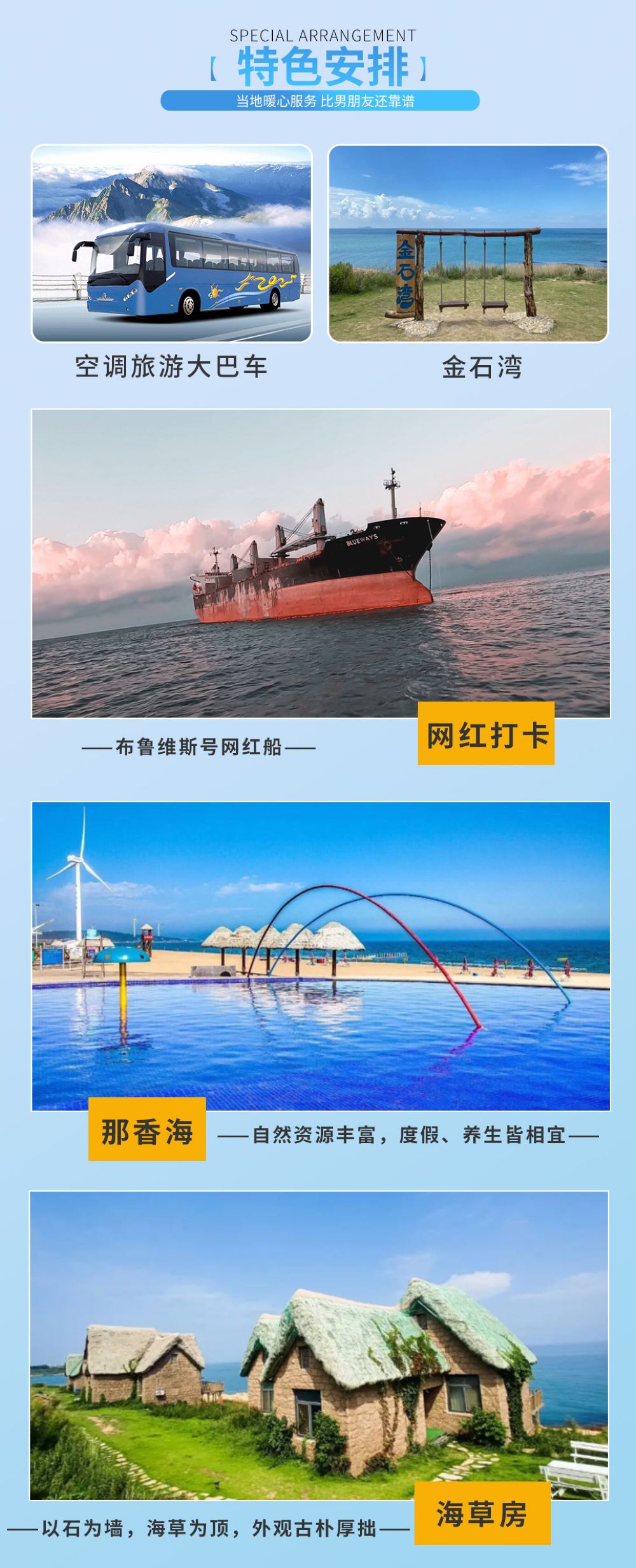 摩天岭北索道+海驴岛+那香海+布鲁维斯号一日游【含简餐】【【安心出游】车内常备自拍杆|晕车药|创可贴|花露水|充电宝等物品;】