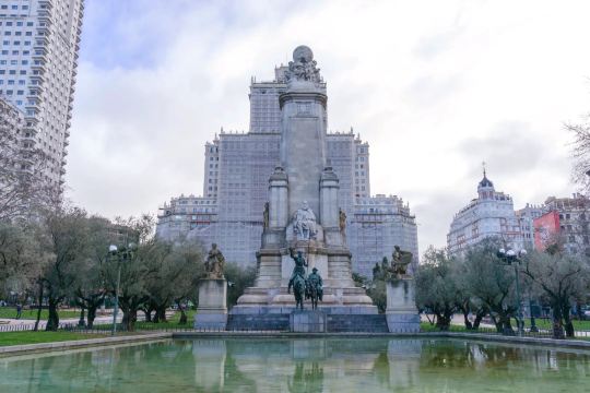 ▲ 塞万提斯纪念碑位于西班牙广场,纪念碑包括一块巨石和几尊雕像(包括塞万提斯的雕像)和代表堂吉诃德和桑丘潘萨的独立青铜雕塑群。