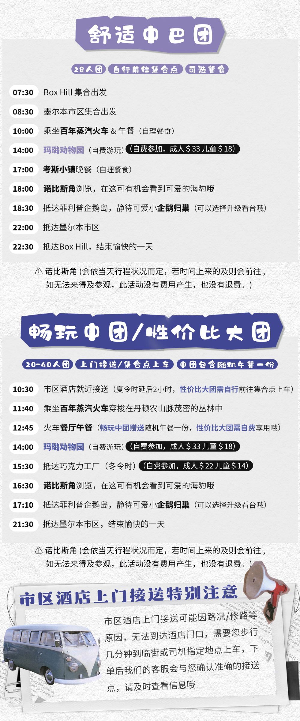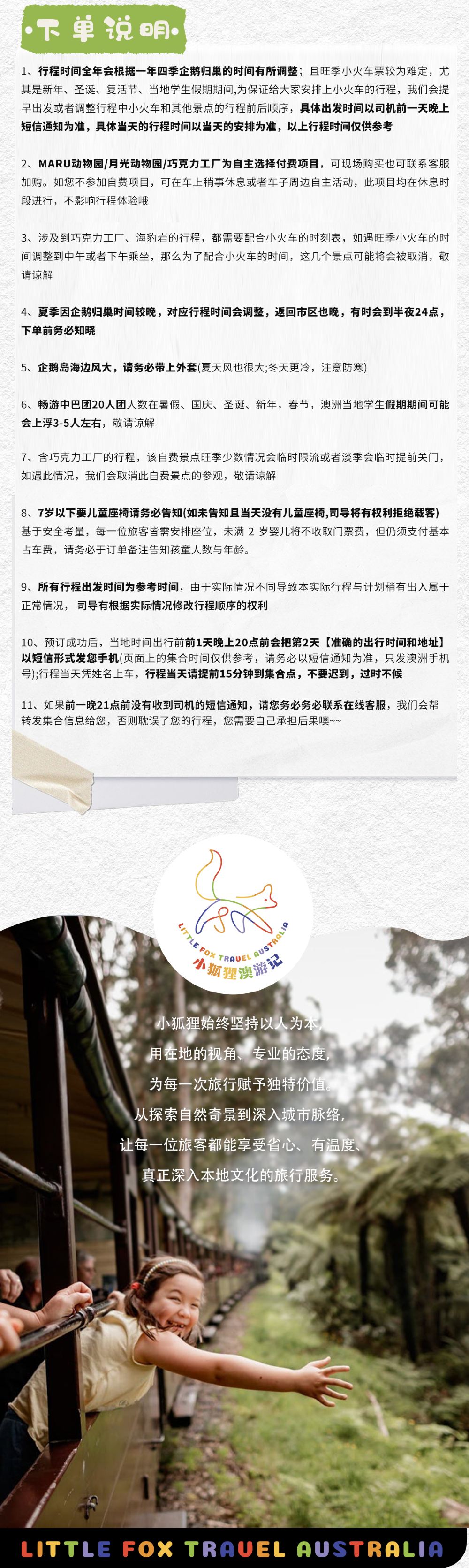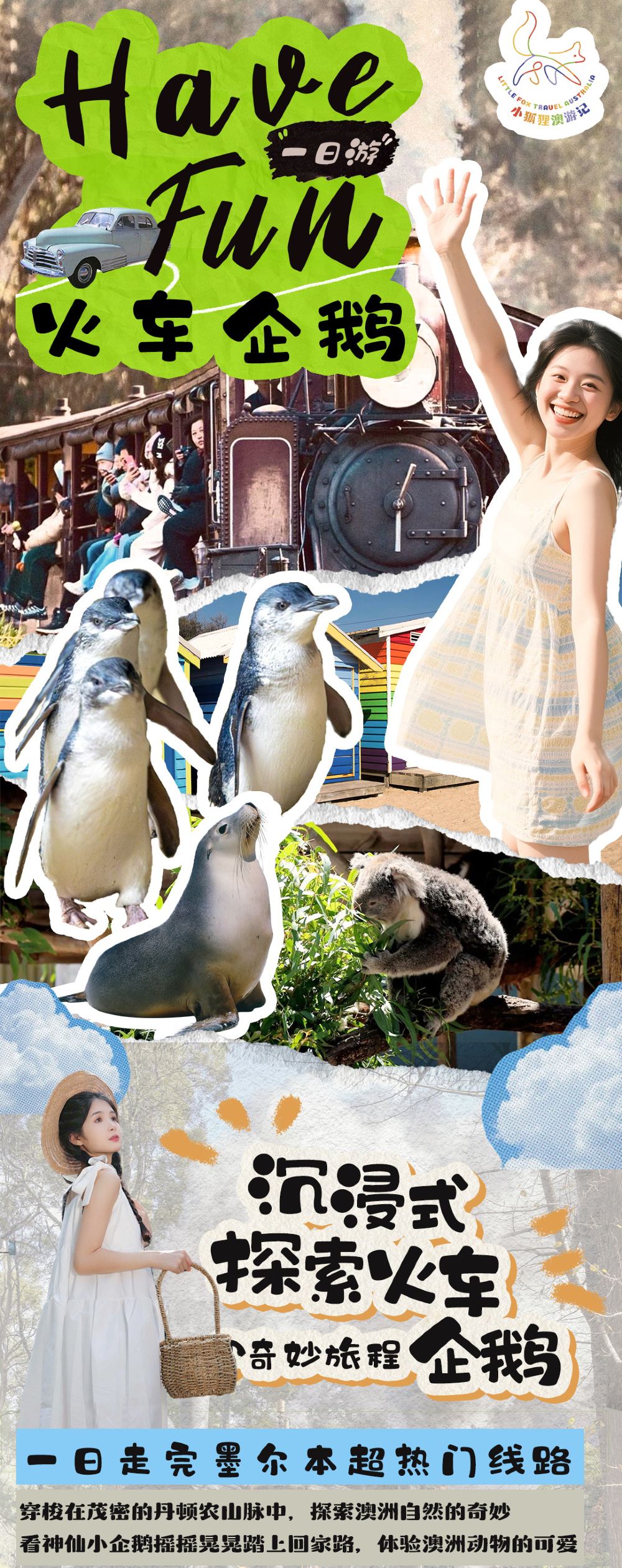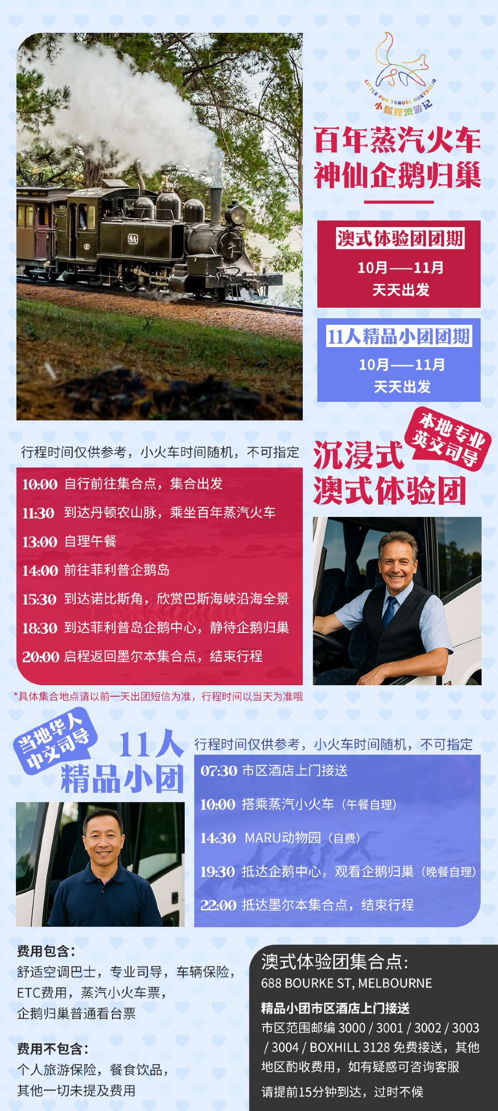 圣诞/元旦必囤可订 墨尔本普芬比利小火车+菲利普企鹅岛一日游【不用早起,可选/[企鹅归巢·蒸汽小火车/靠窗可伸腿/马璐/月光动物园/市区酒店上门接送]】