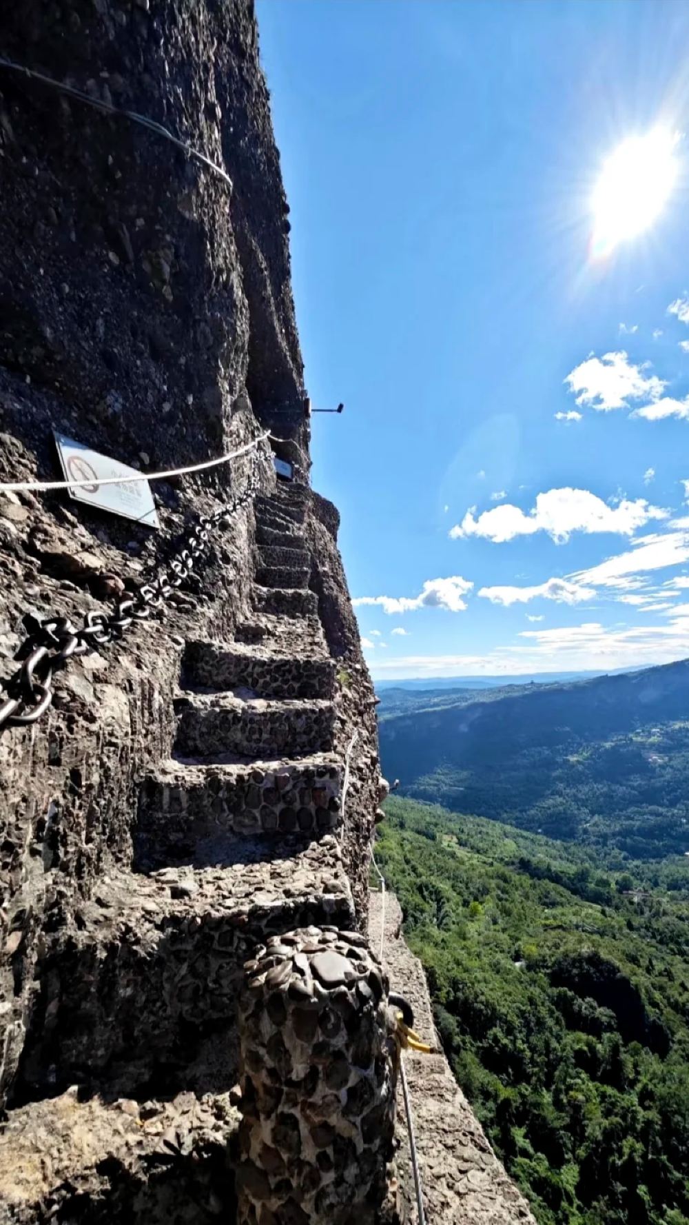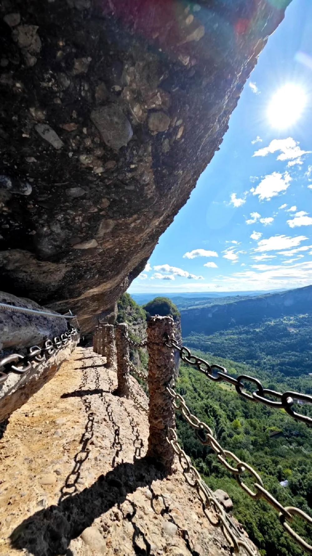 ▲ 猿猱道:呈 “之”字型蜿蜒于陡峭崖壁、全长 446 米、最高落差达 120 米、路宽仅 30 厘米且全程无防护栏的更为刺激的险道
