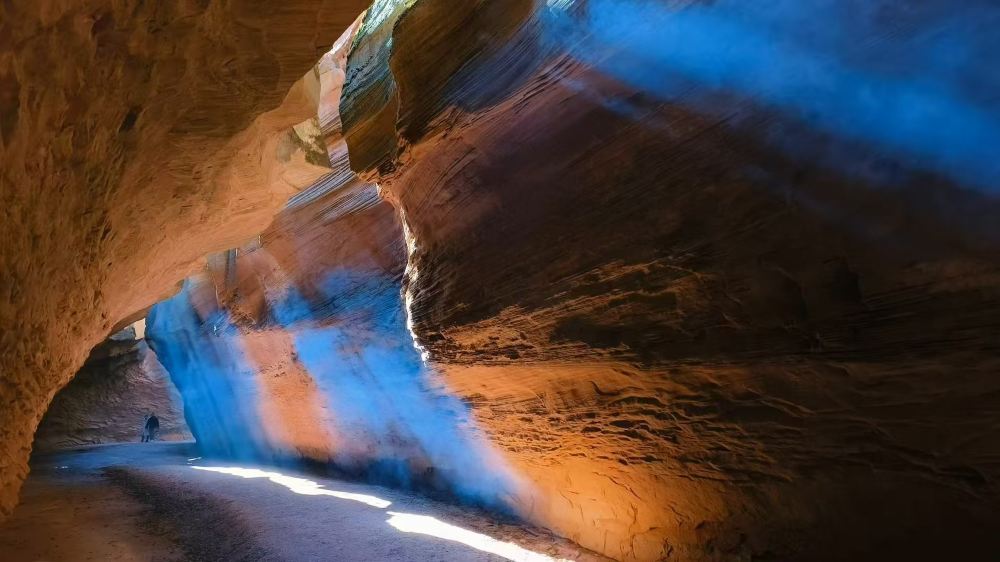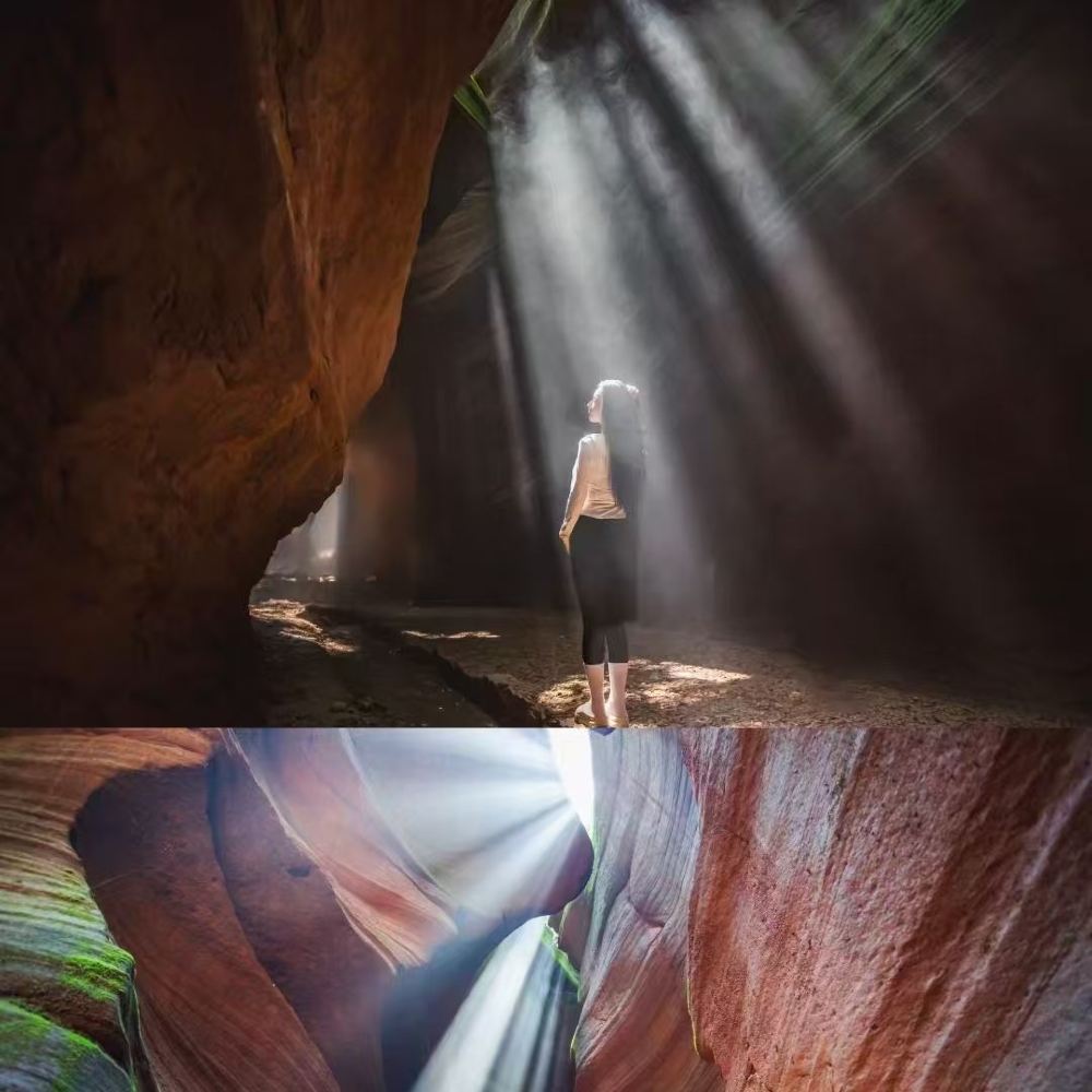 【雨岔大峡谷】,陕北位于黄土高原的中心部位,中生代基岩所构成的地形,大约几亿万年前发生过强烈的地震,使一座黄土大山分开一条大裂缝,宽窄不一,后来又经历上亿年的暴雨山洪,表面不断被水流冲刷,渐渐形成了具有流动性的奇特峡谷地貌。峡谷的表面凹凸不平,但那被水流冲刷的线条却极为流畅,呈现出美妙的波纹曲线,像是被精心打磨出来的一样。亿万年前沿着峡壁流淌的水流像是被定格在上面一样,活灵活现,如此壮美绚丽的峡谷,让人不得不感慨大自然的审美,以及鬼斧神工的技艺。已成为摄影爱好者向往的圣地。