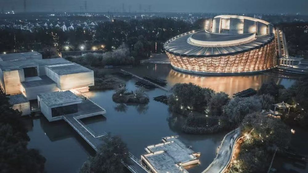 乌镇戏剧节自2013年起每年举办,是汇聚全球戏剧作品和人才的盛会。乌镇大剧院坐落于乌镇西栅景区入口处的元宝湖畔,由姚仁熙设计,以莲花为造型,是乌镇的文化地标。