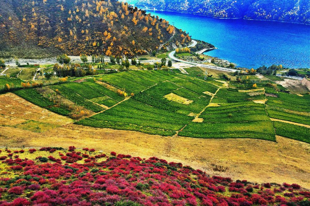 ▲ 黑泉水库观景台,是青海“引大济湟”工程重要部分。这里风景优美,高原湖泊与雪山同框,有落日神光,天然水蚀弥勒佛像等景点,秋季时周边树木金黄,景色如画。