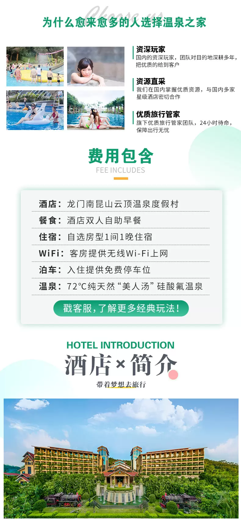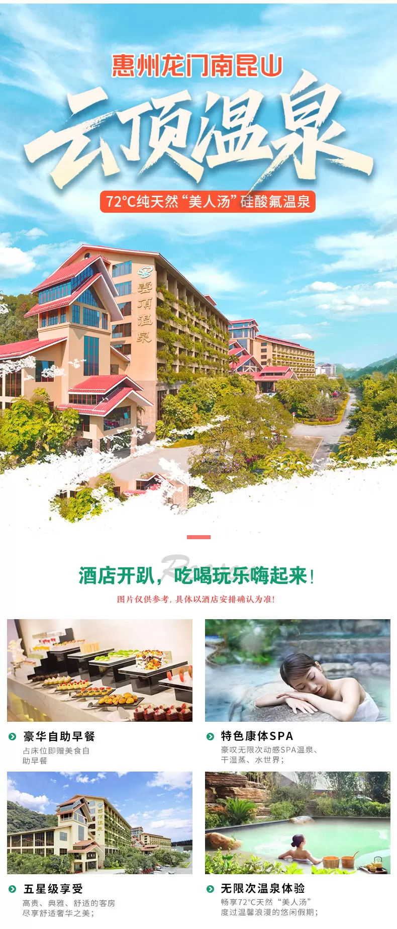 【酒店主楼】龙门南昆山云顶温泉度假村2天1晚+双人早餐+双人温泉+大芹温泉乐园+可选双人自助晚餐