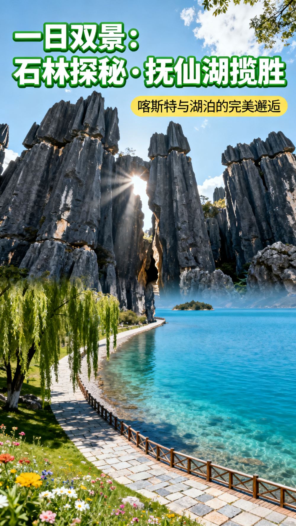 探秘石林,看 2.7 亿年喀斯特地貌的石峰嶙峋,赴一场阿诗玛的传说之约。畅游抚仙湖,沉醉于 “琉璃万顷” 的透亮蓝波,任微风拂去疲惫。一天尽览云南的雄奇与温柔。