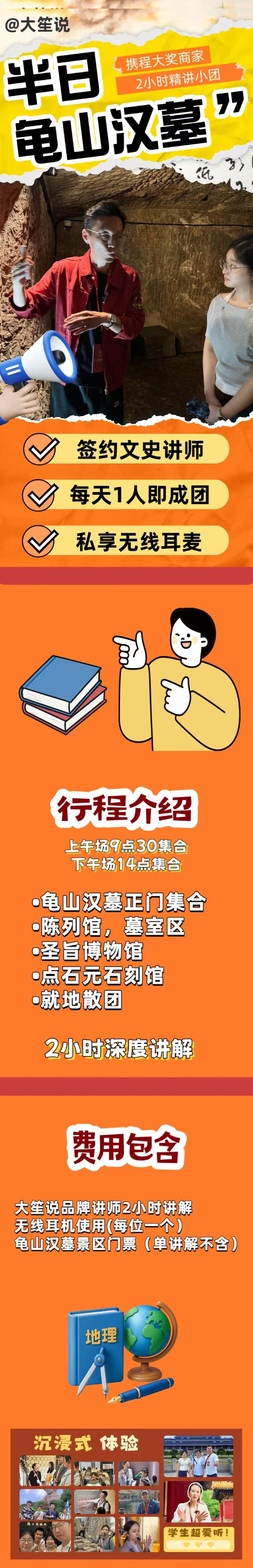 龟山汉墓半日游【大笙说·深度讲解/含门票小团·私享无线耳机】【[大笙说品牌讲师]带您深入龟山汉墓,贴心24H出行管家在线,年服务人数2W+】