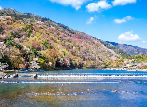 站在岚山渡月桥上,脚下是缓缓流淌的大堰川,远处群山环绕,仿佛穿越回风雅的旧时日本,感受千年不变的宁静与浪漫。