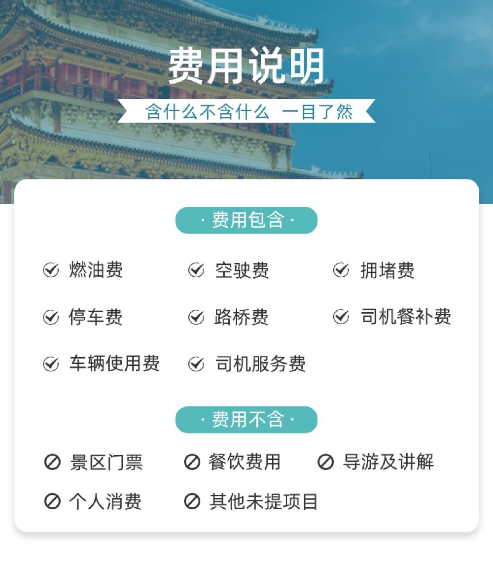 此为包车价,根据人数选择车型拍一份即可,费用不含门票和餐饮