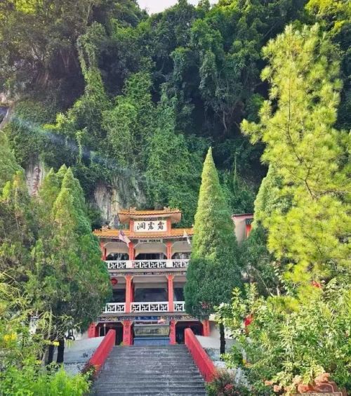 ▲ 这里常是佛教出家人进行冥想修行的场所。霹雳洞庙宇是其中之一,它被建造在洞窟的深处,再洞穴的角落安放着一些佛的雕像及在各隐蔽处画有佛的图案等。 其中吸引旅客的地方当数12.8公尺高的一尊坐佛。这里有一条通道,直通洞穴深处,再攀爬过一个拥有385级的陡峭楼阶梯后,眼前有一个突出的空地,可以瞭望乡村景色。