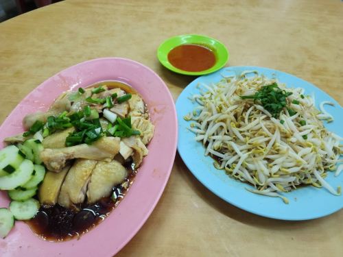 ▲ 怡保因为水质饲养出的鸡肉肉质鲜嫩,芽菜也特别粗壮清脆,跟一般常见芽菜不同,当地流行将芽菜清烫后淋上酱汁,搭配类似白斩鸡肉一起食用,淋上酱汁的鸡肉特别鲜香,一口牙菜一口鸡肉,非常美味好吃。
