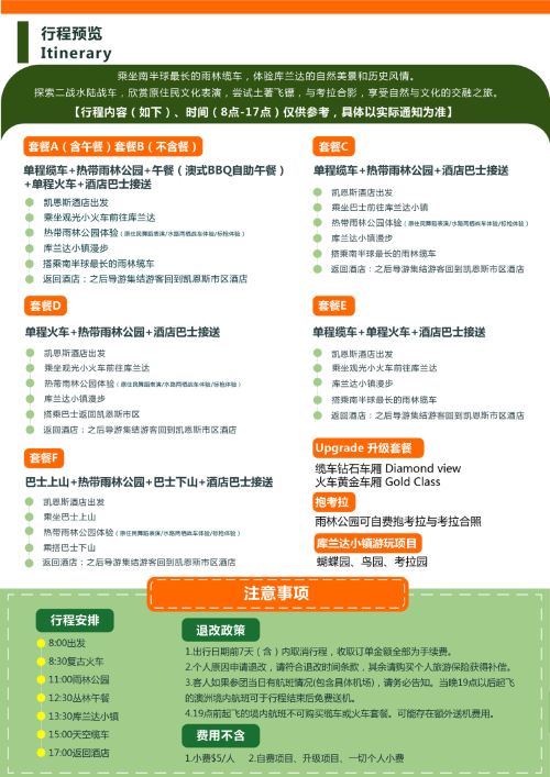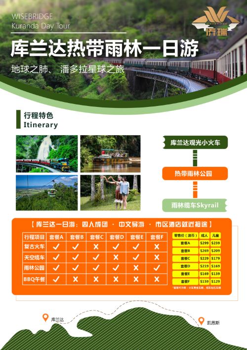凯恩斯库兰达热带雨林一日游【复古火车+天空缆车+雨林公园】【乘坐南半球最长的雨林缆车,体验库兰达的自然美景和历史风情~】