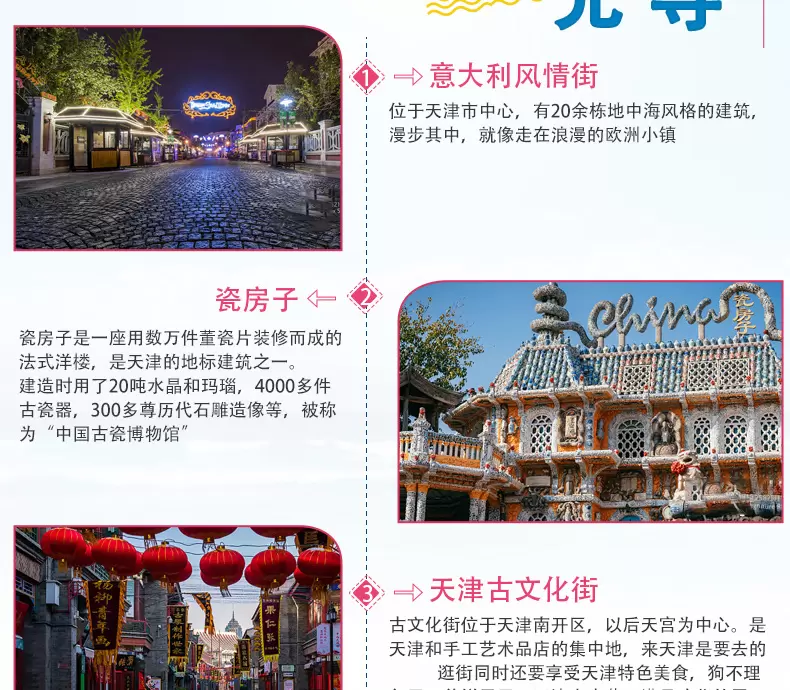天津意大利风情区+古文化街+瓷房子+海河游船一日游【外观天津之眼+相声+可选五环内接】