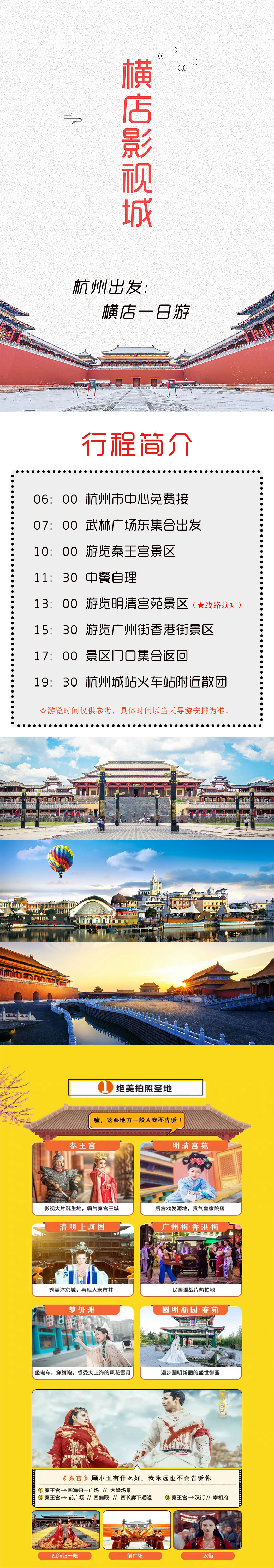 横店秦王宫+广州街香港街+明清宫苑一日游(纯玩无购物 主城区上门接)