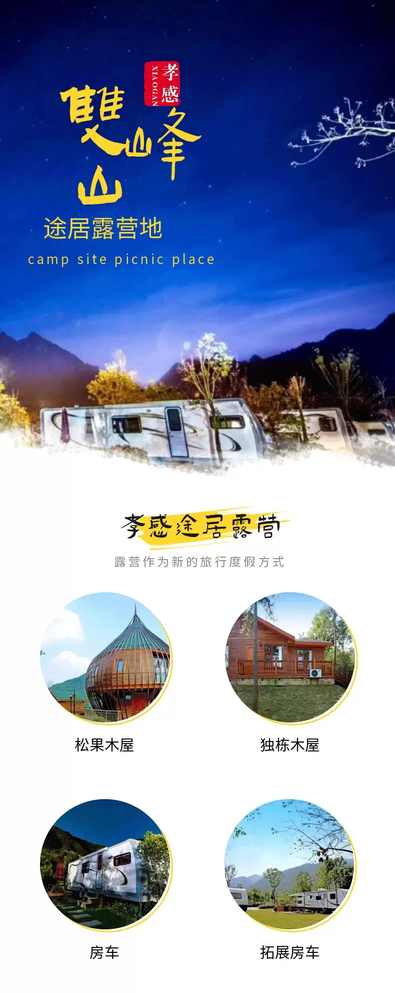 【酒店套餐】孝感途居双峰山露营地房车住宿1晚+早餐