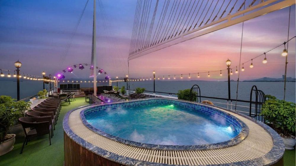 ▲ 宽敞的阳光露台配备全景按摩浴缸、氛围灯串和人造草坪——是欣赏日落美景和享受户外休闲的完美场所。