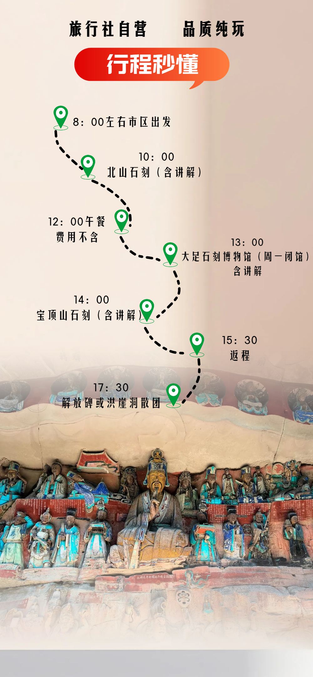 8人团·9点出发·大足石刻全景一日游【上门接、三场人工讲解】【【深度体验】三场人工讲解,深度体验石刻文化,拒绝走马观花!】