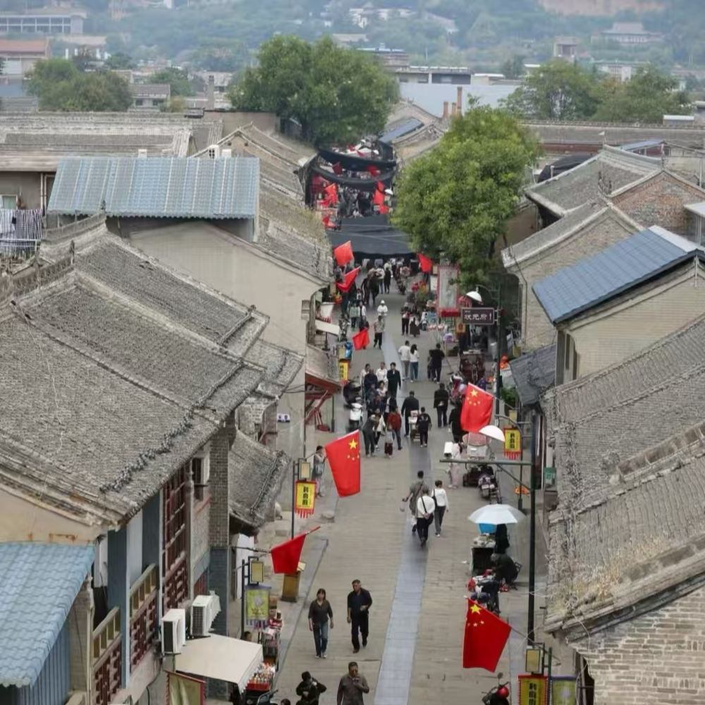 ▲ 韩城古城建于隋唐时期,金大定四年土筑城墙,明崇祯十三年(1640),由本市人当朝宰相薛国观奏朝廷批准,倡议地方官员、绅士捐资改土城墙为砖城墙。 城四门门楼额东日“东带黄河”,西日“梁奕西襟”,南日“溥彼韩城”,北日“龙门胜地”。 古城街区,南北贯通的大街为主街道,呈龙形,长达千米,略有弯曲,如同龙身横卧;古城北边步步登高的园觉寺顶端金代宝塔如龙头昂扬,南端的古石桥如龙尾摆动。龙形主街两翼及东西南北四关,有纵横交错,曲直有序,四通八达的大小巷道72条。