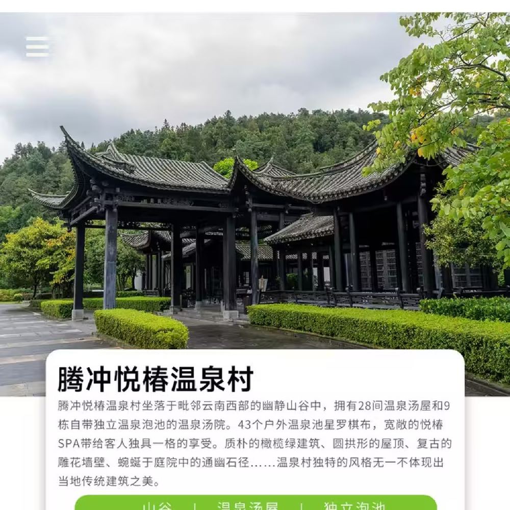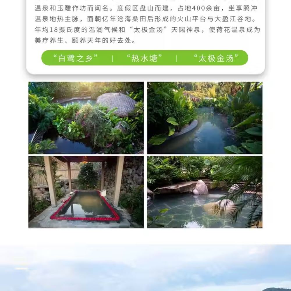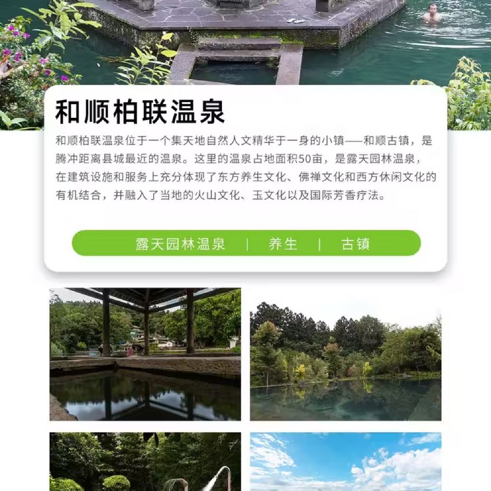 腾冲浴谷温泉,悦椿温泉,柏联温泉,荷花温泉一日游(上门接送)【[私人专享]:一对一专业司机贴心服务,独立用车,随走随停,轻松游玩!】