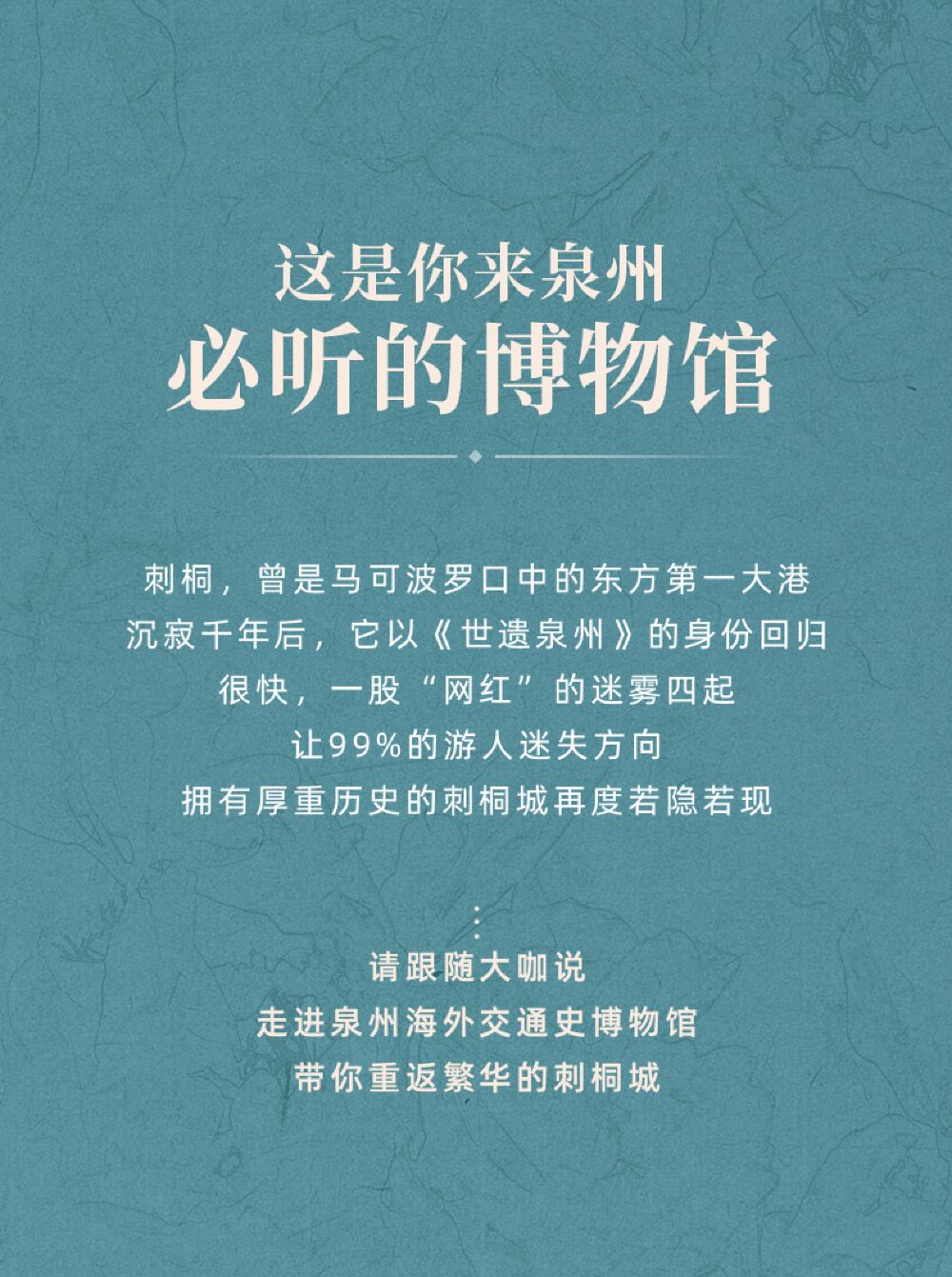 “大咖说”海外交通史博物馆 3小时精讲·12人团【不含门票】【[大咖讲解]汇集泉州文史讲师,匠心分享世遗泉州,让千万人爱上中国文化。】