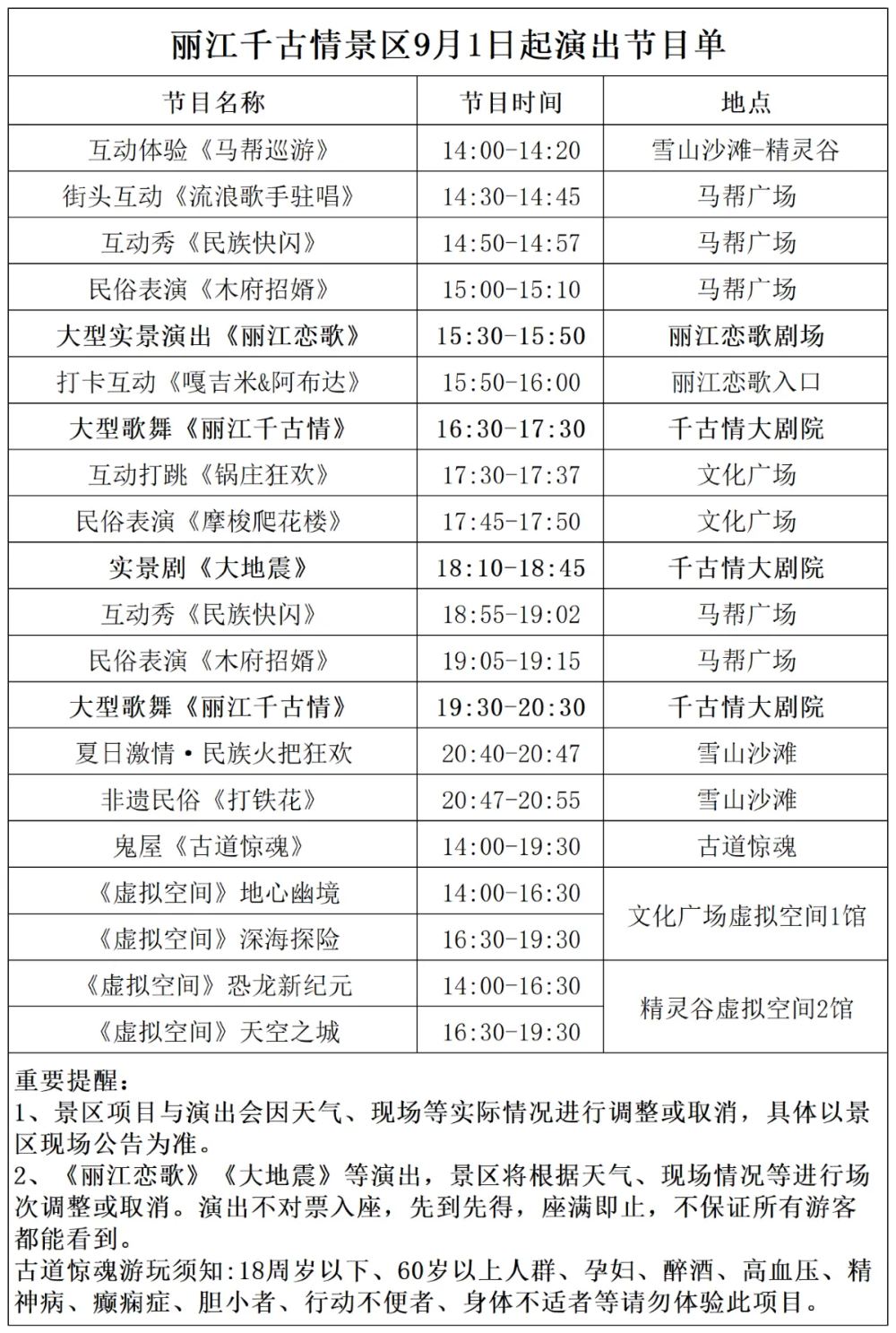 ②千古情场次以景区放票公布为准,接近日期的客人会及时联系出票事宜,场次您定!提前定的客人位置合适了也会提前联系出票,场次选择充分尊重客人意愿