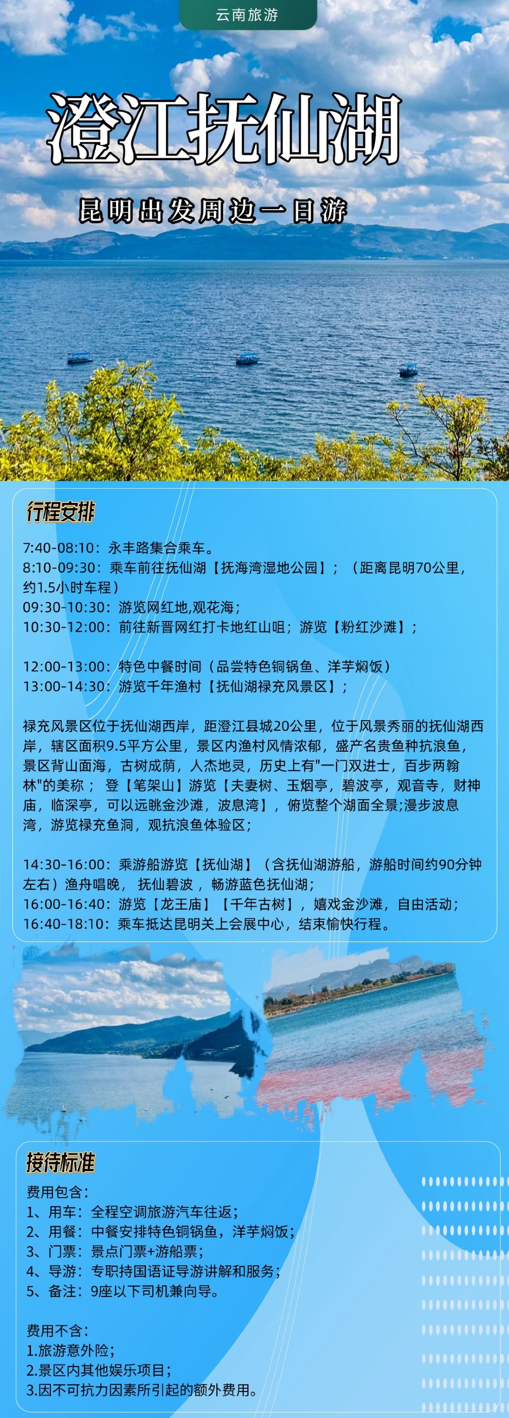 昆明出发:抚仙湖一日游【打卡粉红沙滩+乘船游湖】【地方特色美食:铜锅鱼+洋芋焖饭】