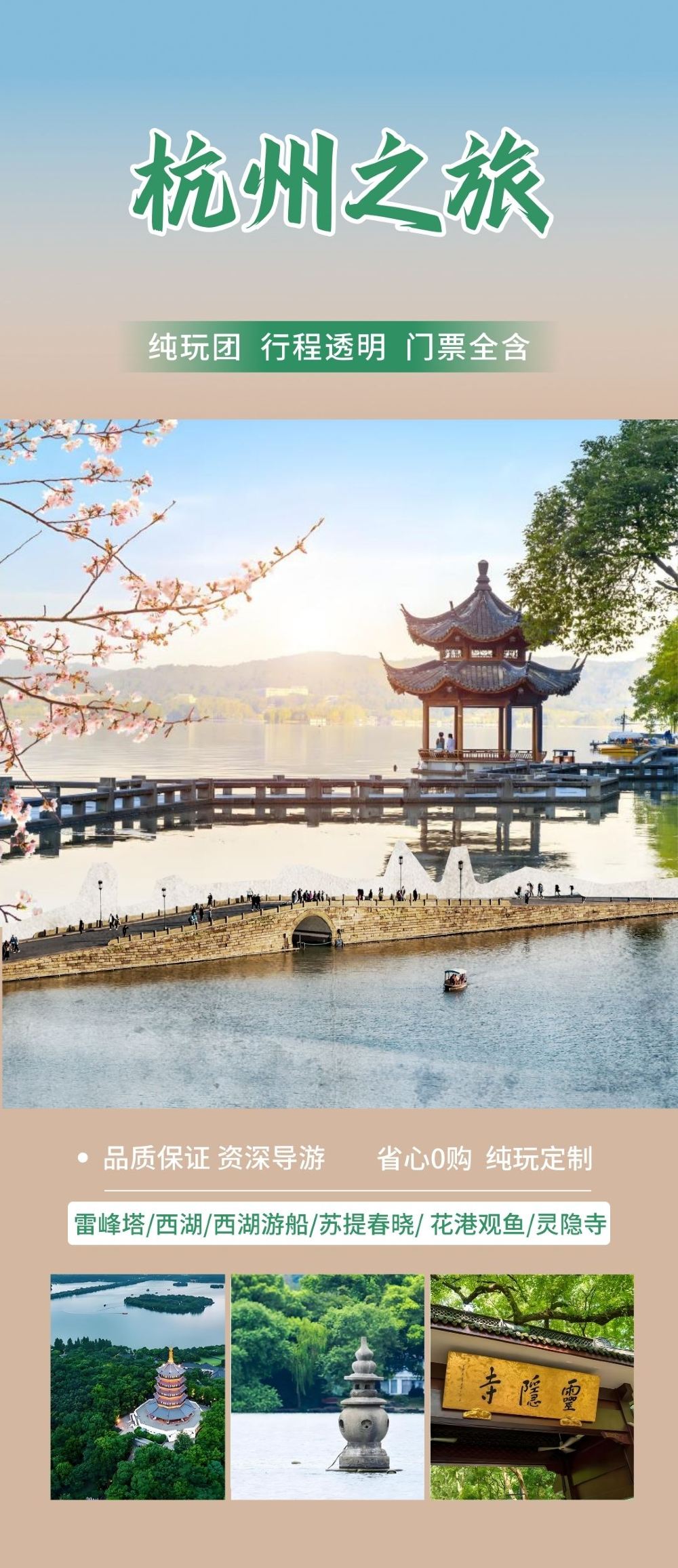 杭州纯玩小团:雷峰塔+西湖游船+灵隐寺飞来峰+花港观鱼一日游【全程纯玩0购物,资深导游讲解,行程轻松。】